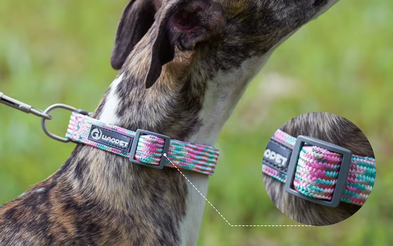 My dog’s always running around the backyard, rolling in grass and mud, but this collar stays in place and still looks bright after washing.