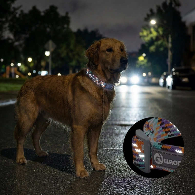 My pup grows fast, so it’s awesome that I can adjust this collar in seconds. He always seems happy wearing it, and it stays bright after many walks.