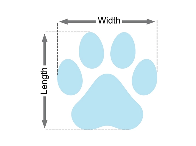 - 2. Mark the widest and longest parts of the paw, then use a ruler to measure these distances.