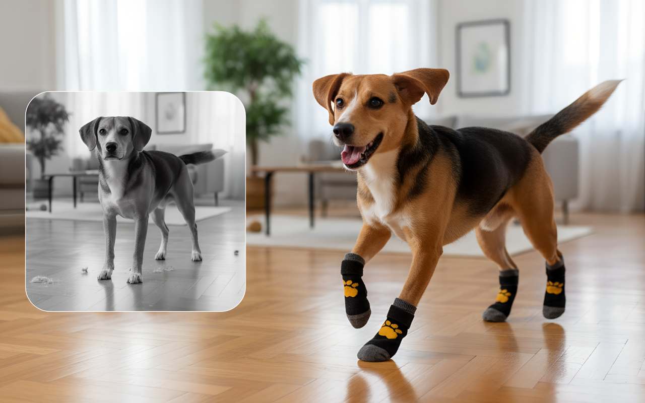 Furniture lasts longer when paws stay covered by Primdog socks. Surfaces resist scratches, and dirt is less likely to travel around.