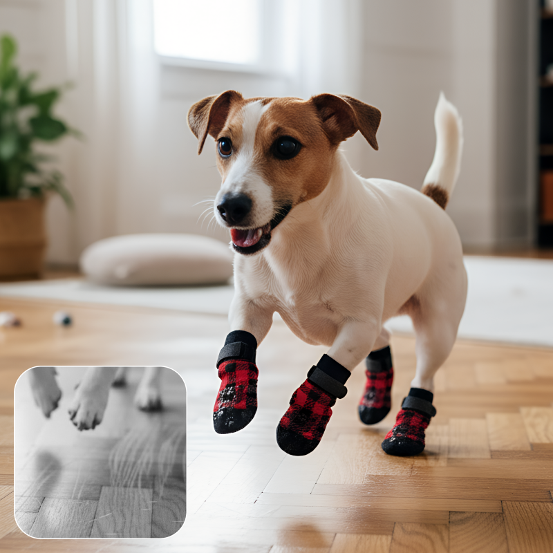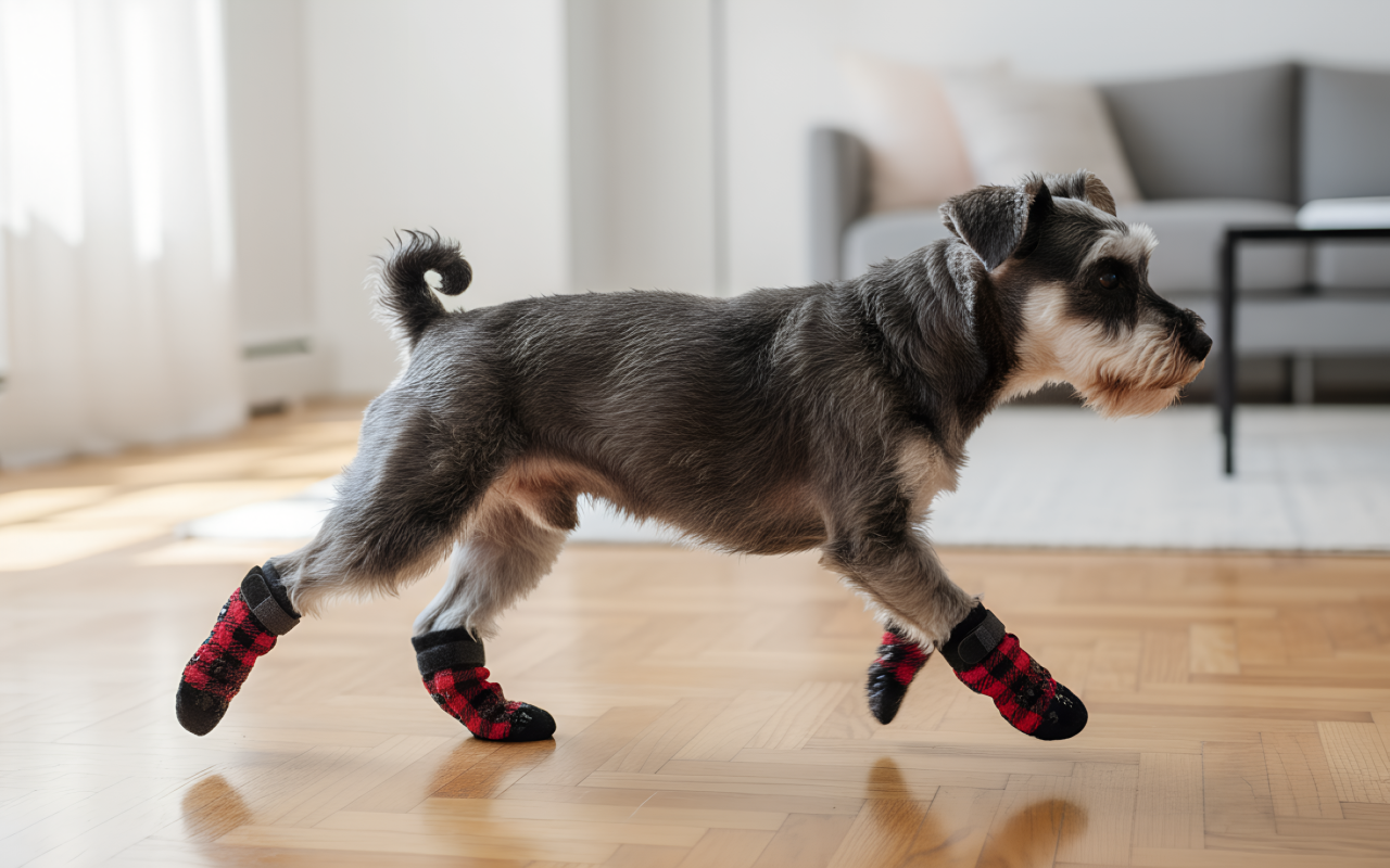 My dog wears these all day. His feet no longer feel cold, and there’s no more slipping by the kitchen. They’re durable and hold up to zoomies.