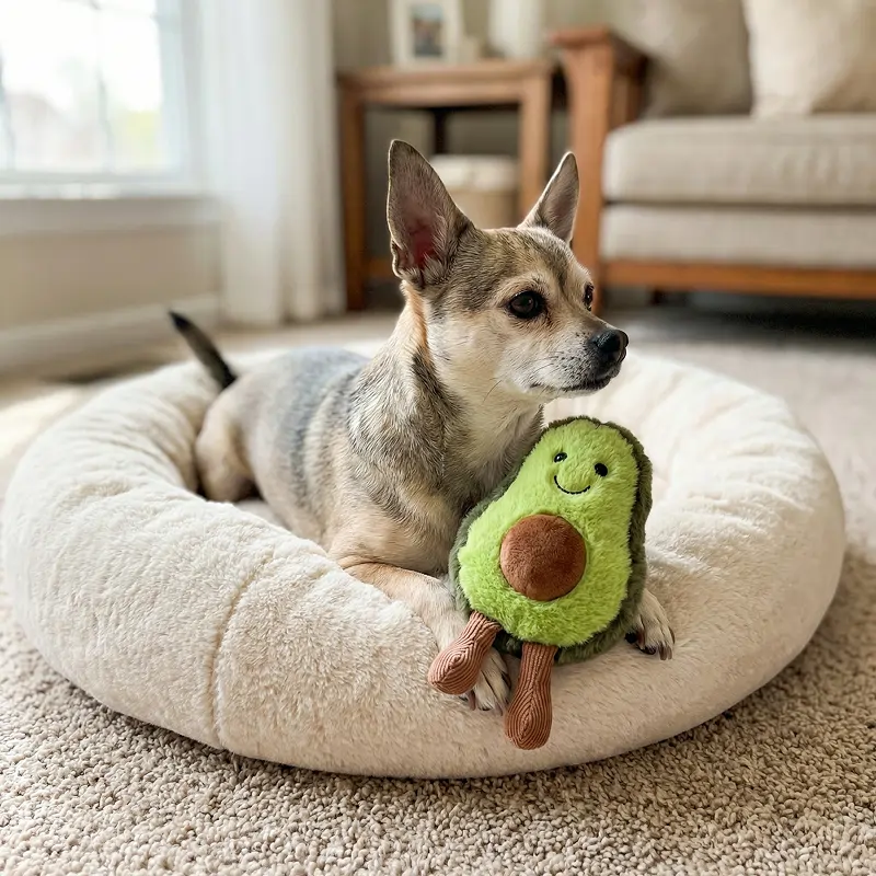 My pup instantly loved her avocado chew toy, even taking it to bed with her. The soft fleece is great for her teething. Super cute, too!