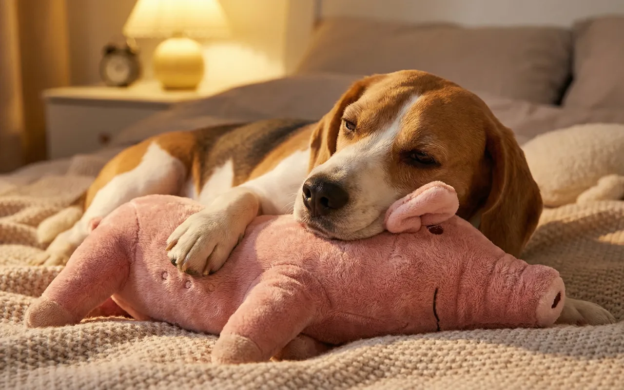 My shy rescue dog warmed up to this pig toy right away. She cuddles it on the couch and gently gnaws, which seems to help her relax.