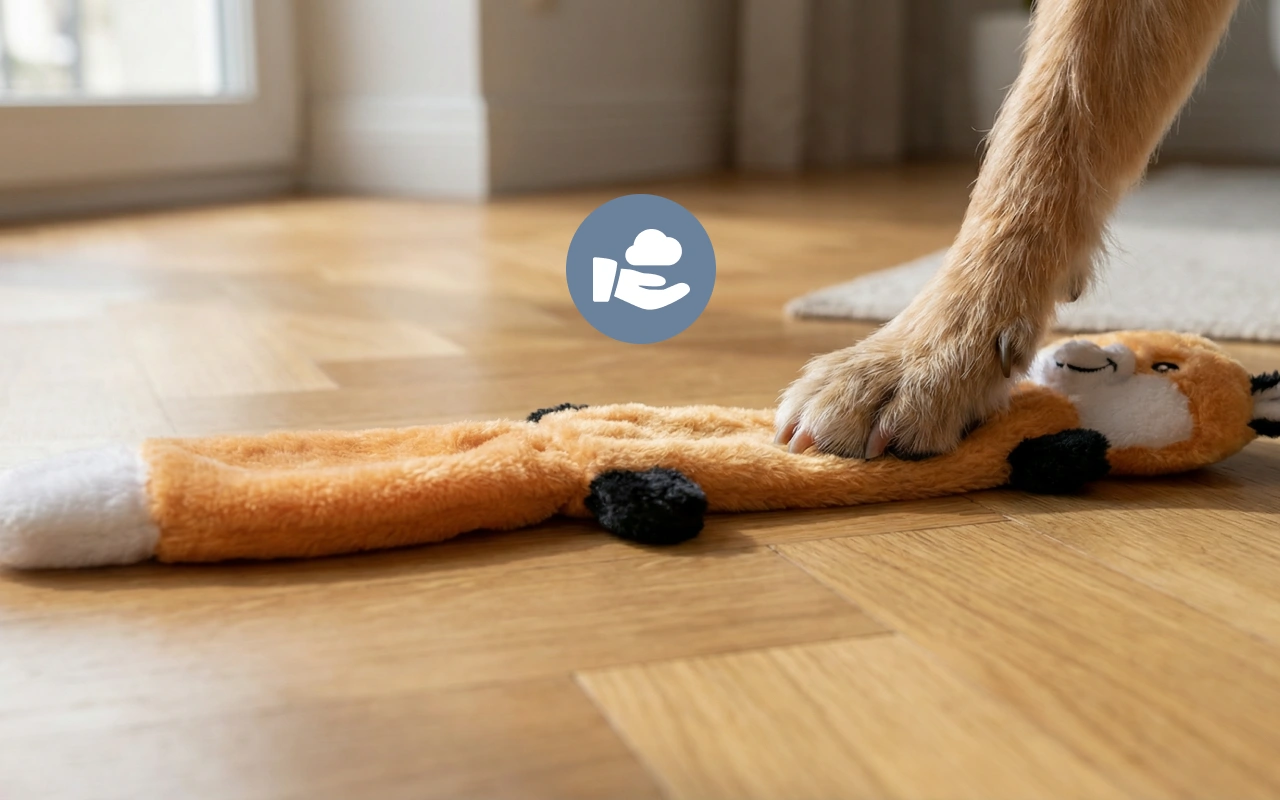 Fleece animal is the best rainy-day playmate. Keeps my dog jumping and running even when we can’t go outside.