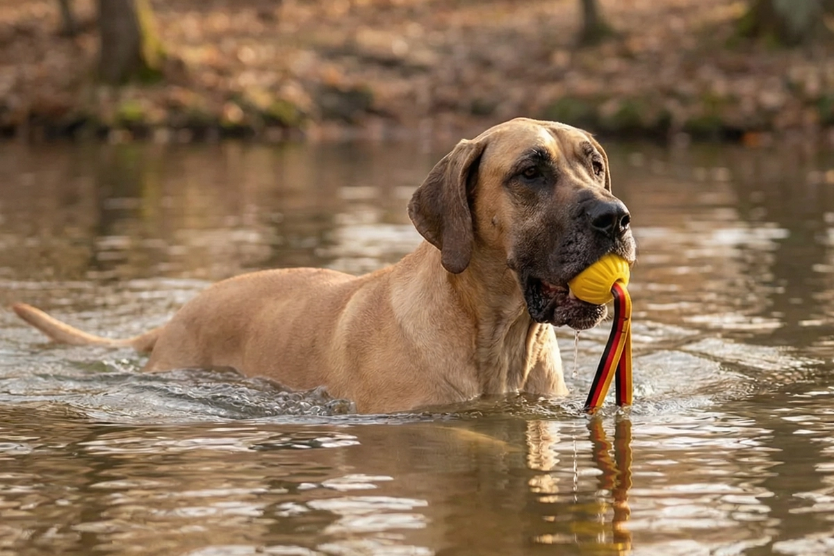 Picked up this toy because my dog loves water. It floats great, and retrieving it from the pool is always exciting for her.