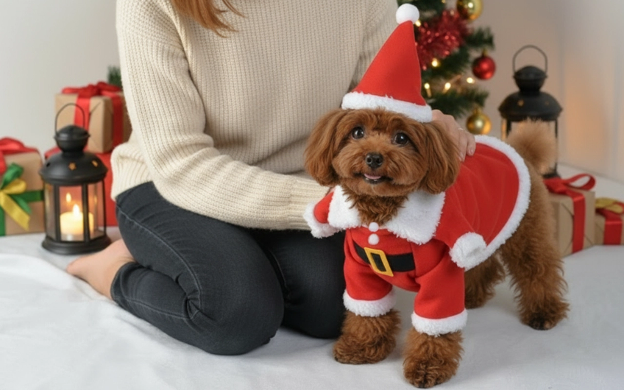 The little hat stayed on and the Santa outfit kept my dog cozy outside. Neighbors couldn’t stop smiling when they saw us. Great for winter walks and parties.