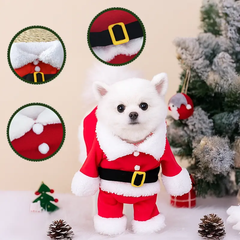 Dog Red Santa Claus Costume Father Christmas Suit with Hat