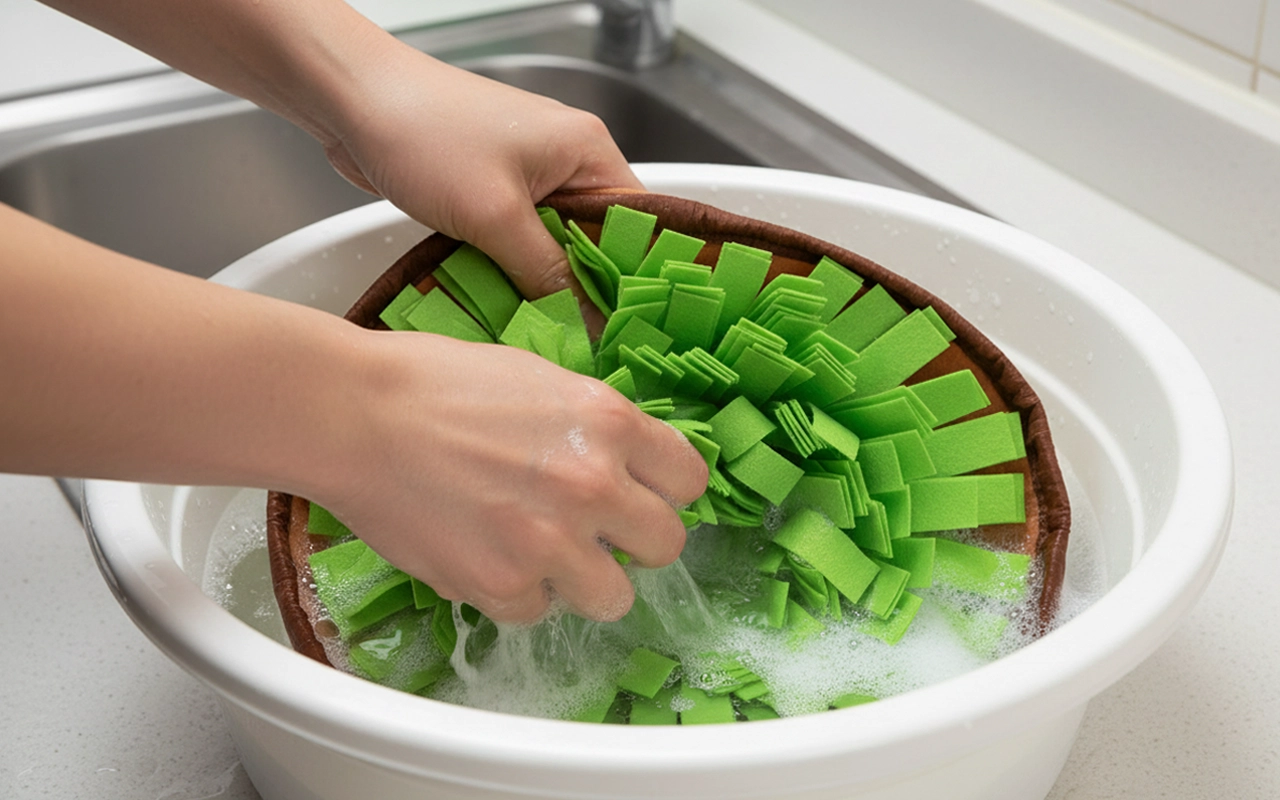 The Primdog Snuffle Mat washes quickly in any standard washing machine. It dries fast and stays fresh for your next play session.