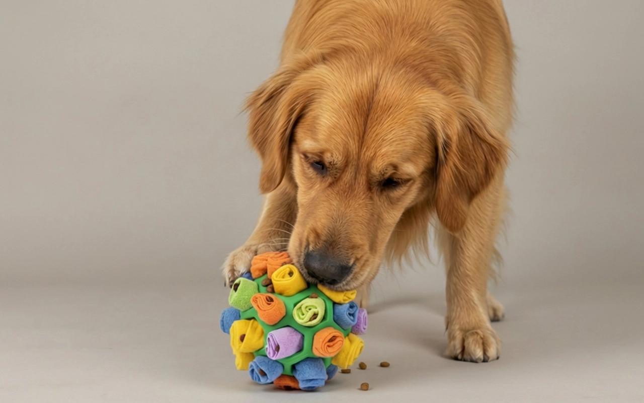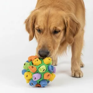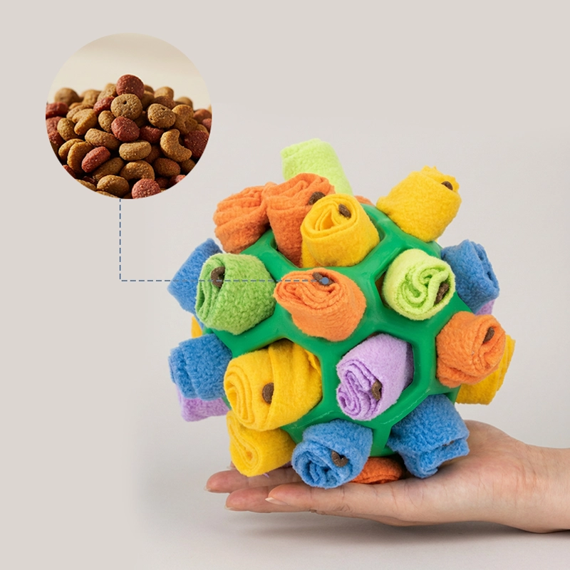 Our pup totally loves this snuffle ball. She spends ages digging for treats and it really keeps her busy. She’s calmer now thanks to sniffing and searching.