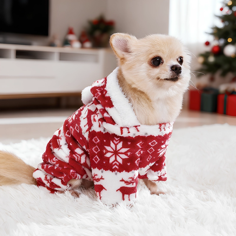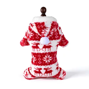 Dog Warm Fleece Christmas Pyjamas with Hood
