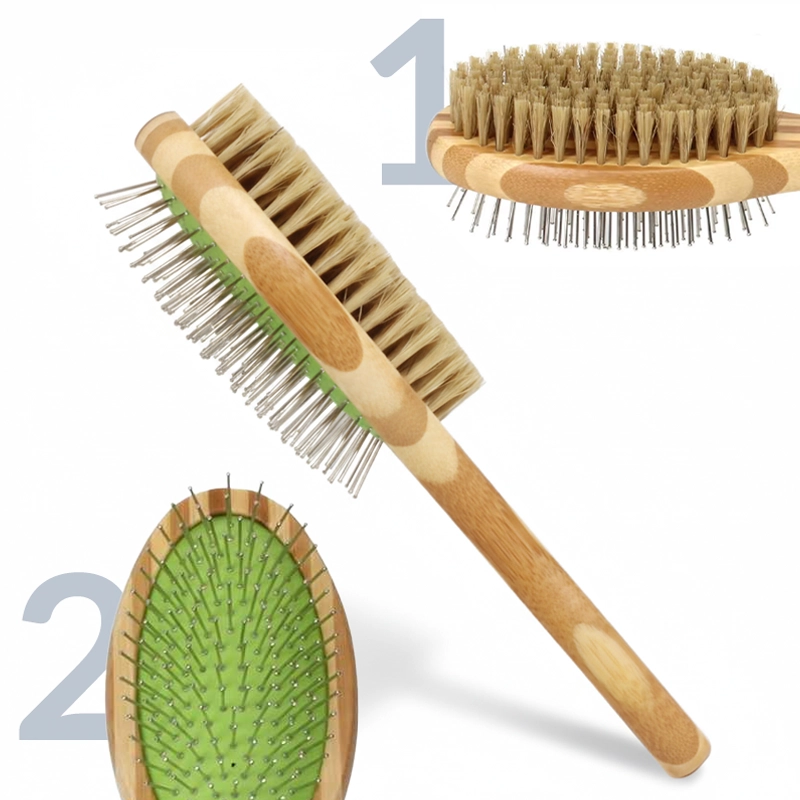 Switch easily between bristle and pin sides for full care. Each side targets tangles or smooths fur for a polished finish.