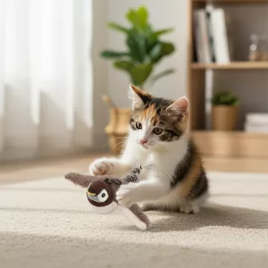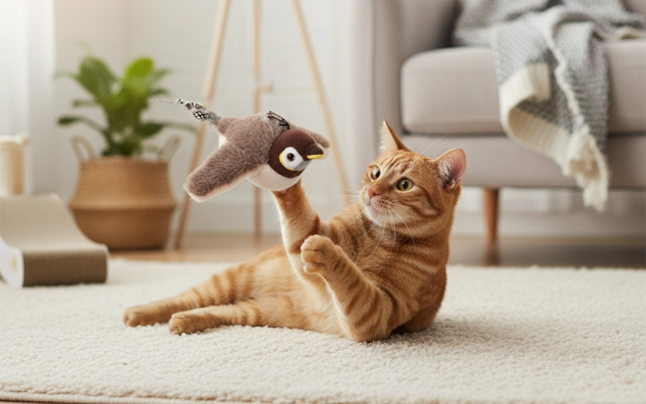 Realistic melodies and flapping wings spark natural curiosity fast. Cats stay sharp, focused, and cheerful for hours indoors.