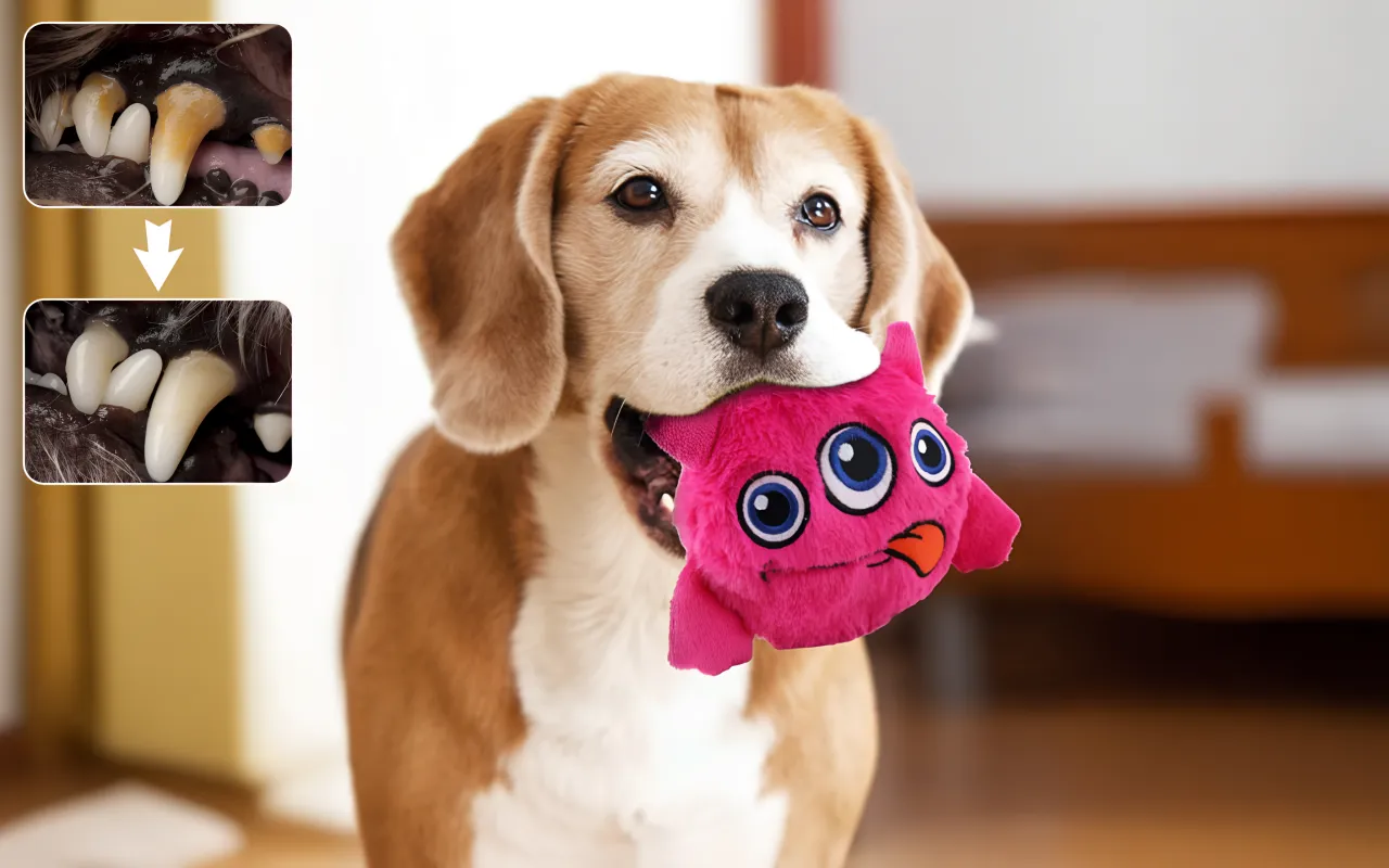 The plush cover gently protects teeth and gums. Durable design helps withstand playful bites and energetic fun.