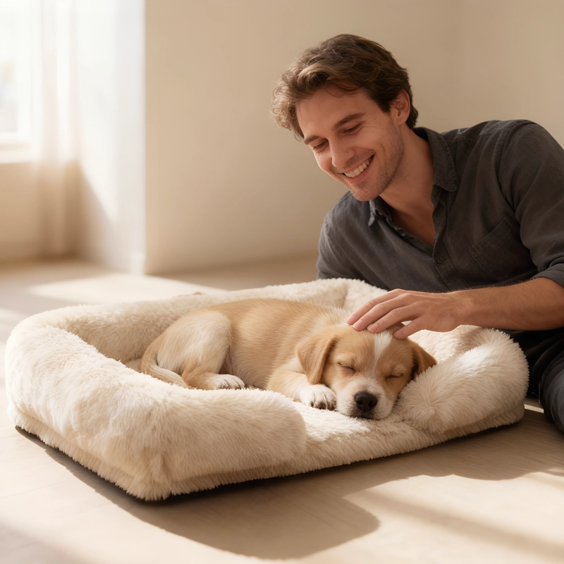 I’ve noticed my anxious dog sleeps through storms now. The squishy sides help her relax, and the fluffy fabric feels super soft when I pet her.