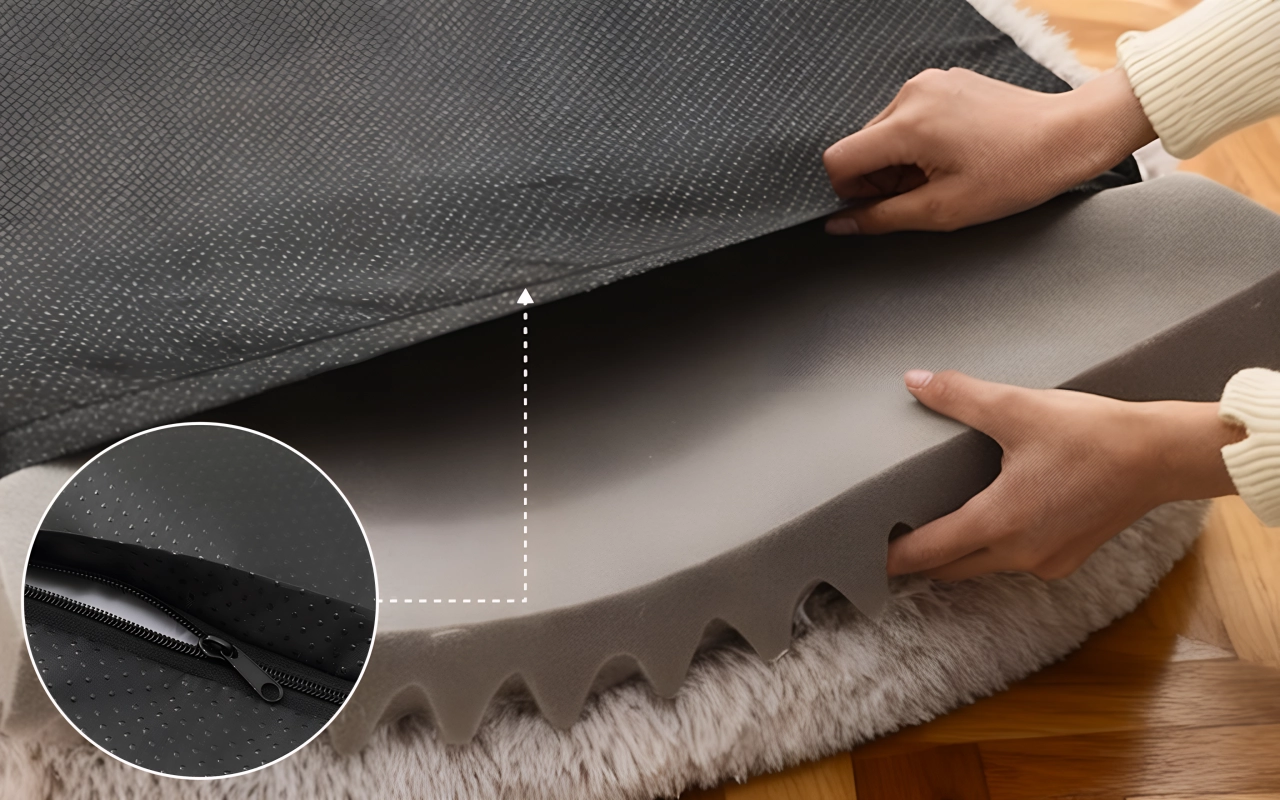 Sturdy and so fluffy! My shepherd pup jumps right in after walks. Raised border keeps him cozy, and the removable cover handles messes easily.
