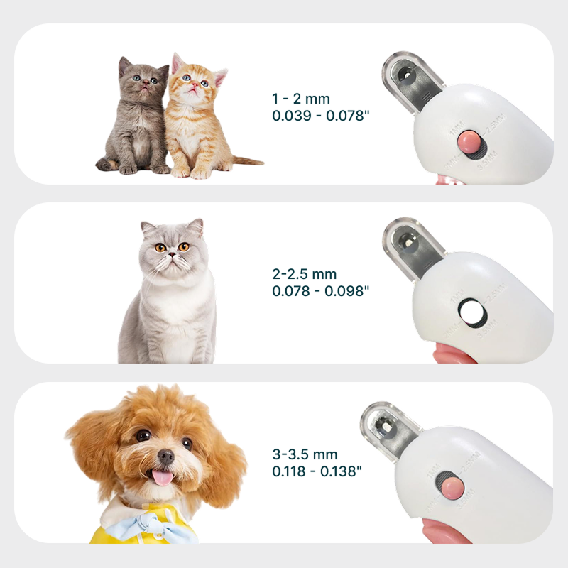 Choose the best size for every paw, large or tiny. One tool works for kittens, puppies, and all breeds.