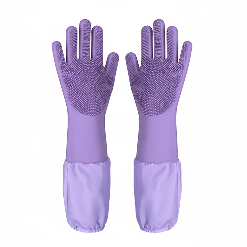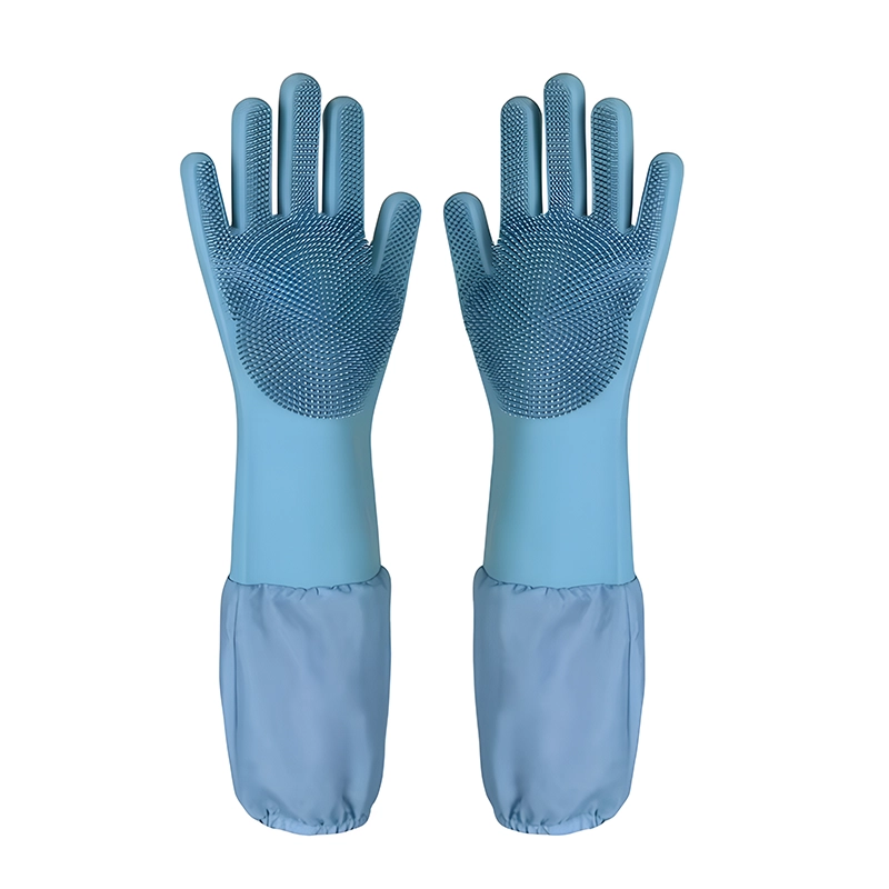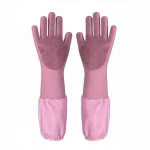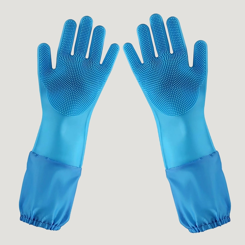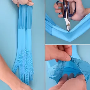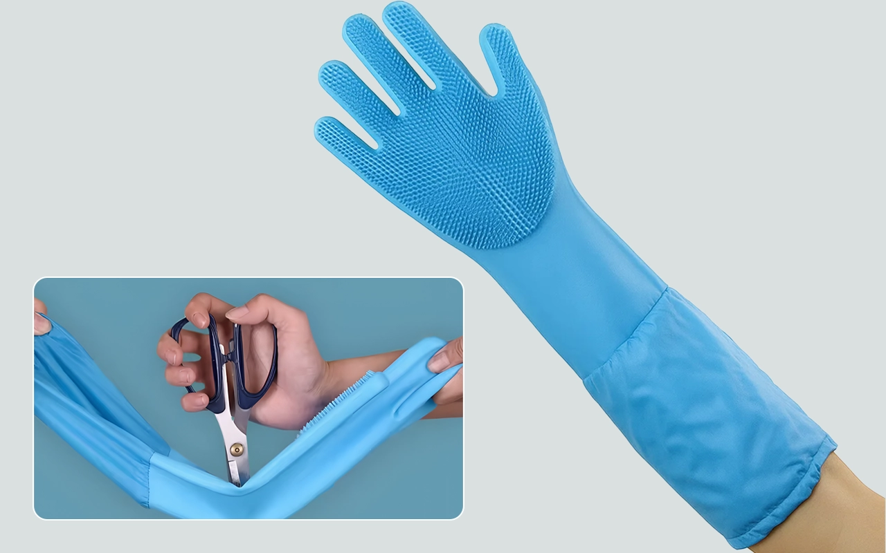 Strong silicone keeps skin dry and shields arms from water. No harsh chemicals touch your body during every wash.