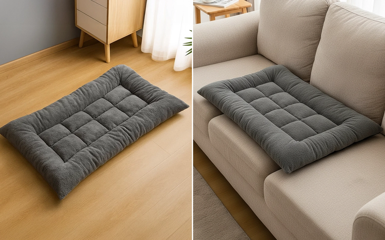 My dog loves this thick mat for his naps. It’s warm during winter but easy to flip when it gets hot—keeps him cool and happy. Highly recommend!