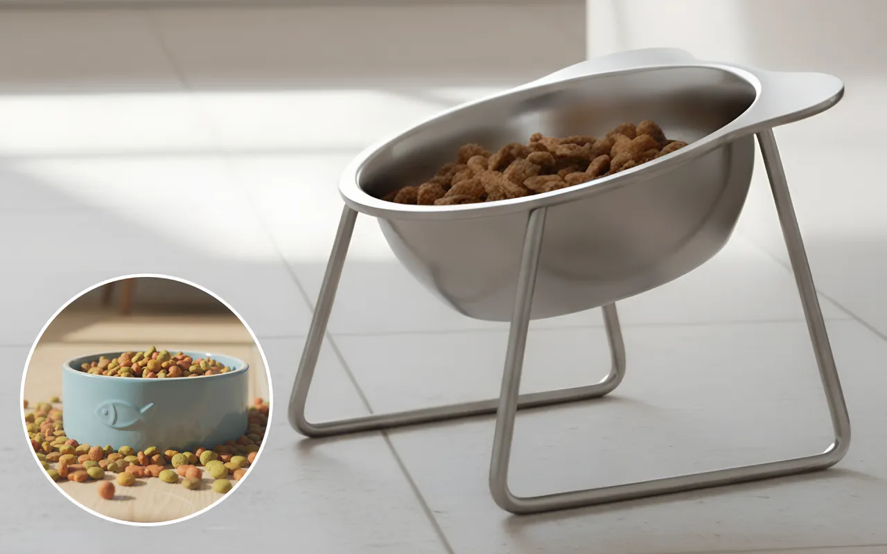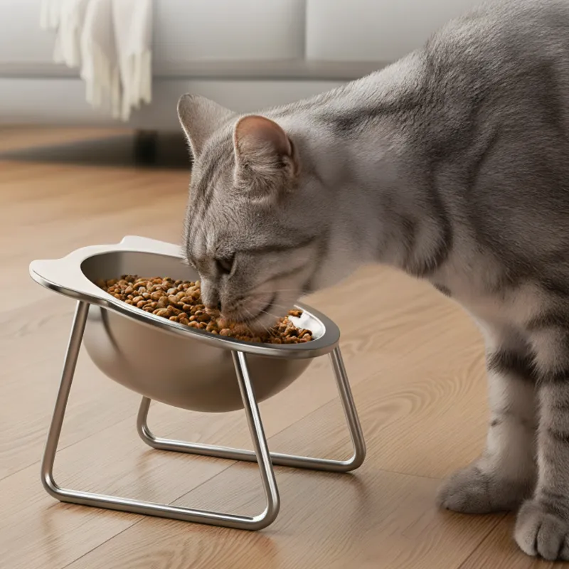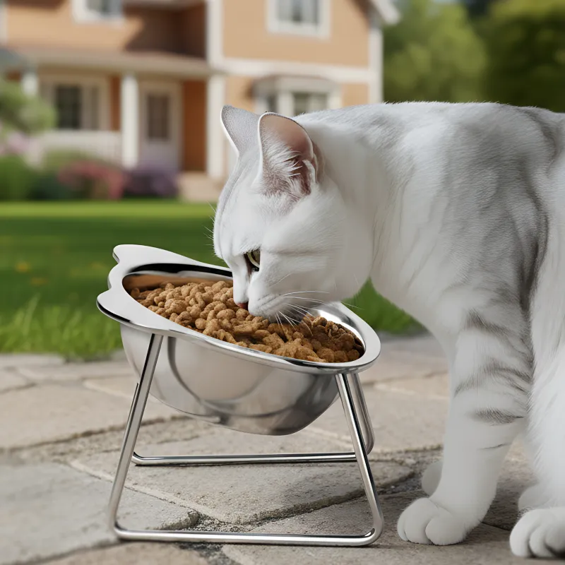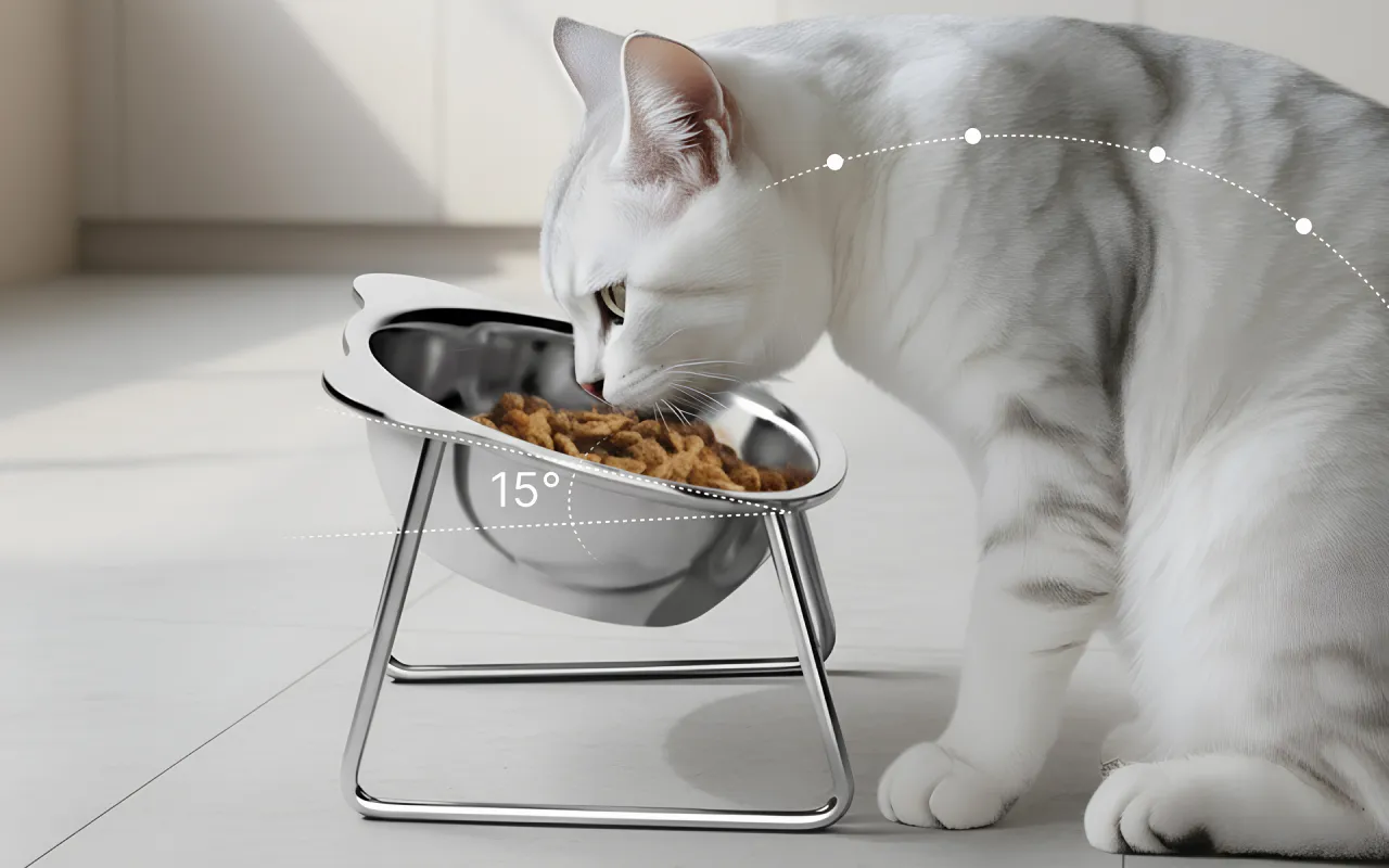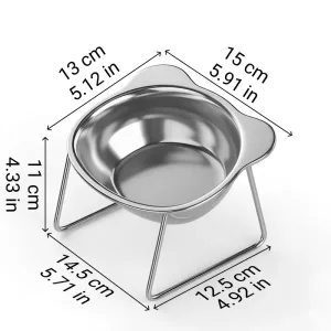 Stainless Steel Tilted Cat Bowl with Stand Raised Pet Feeder
