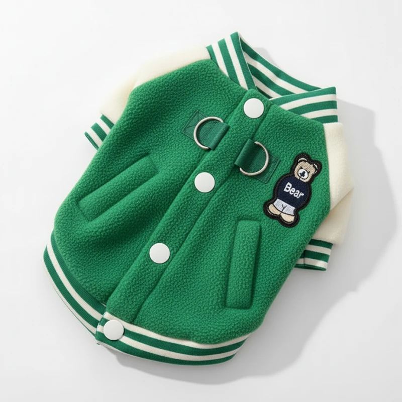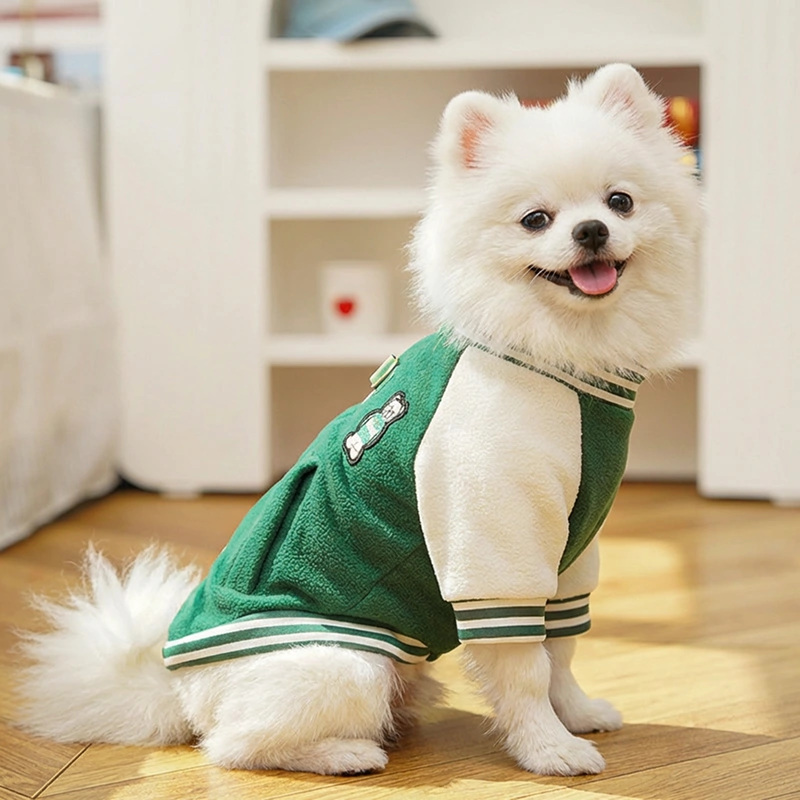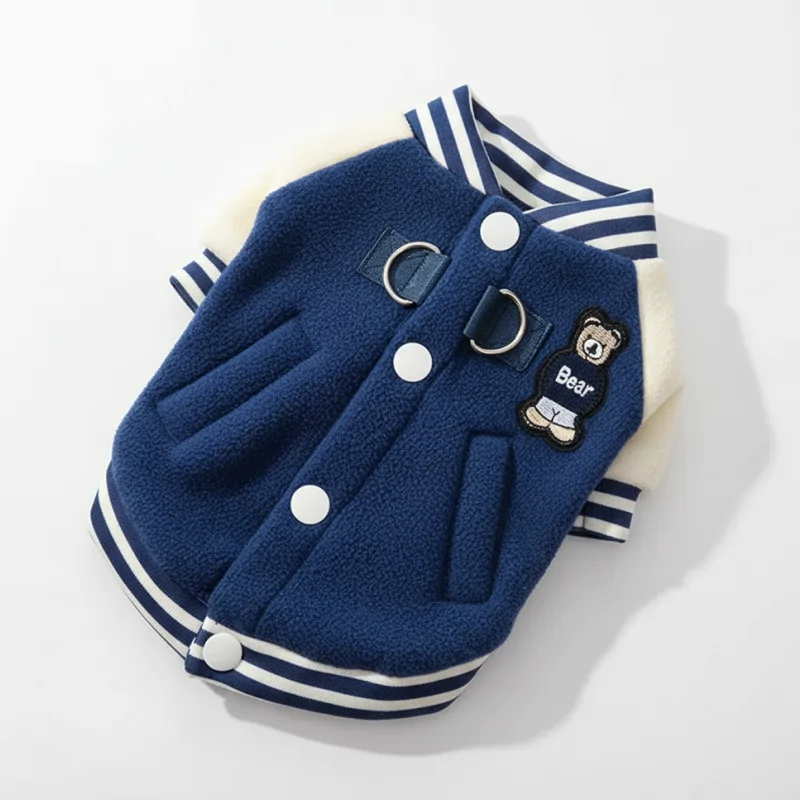 Love how cute my dog looks in the jacket! The patches and colors are adorable, and it fits perfectly over his fur.