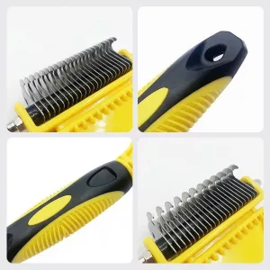 Two-Sided Stainless Steel Dog Hair Dematting Rake Detangling Comb Deshedding Tool
