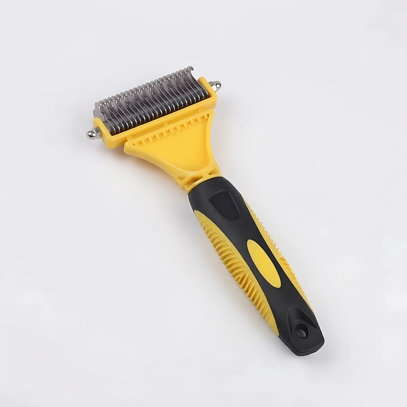 Bought this comb for my dog. It slips through his thick fur, breaks up old mats, and leaves him soft without any yel or fuss.