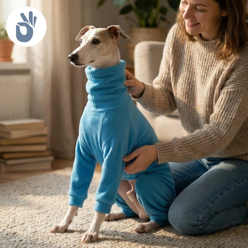 My dog barely noticed the onesie but was clearly cozier during cold nights. Washes well, no shrinking or fuss.